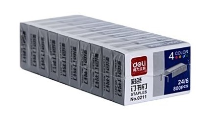得力0211彩色订书钉12#(混)(800枚/盒)