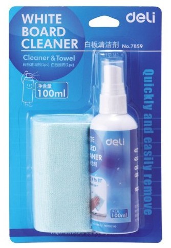 商品名称:得力7859 品牌:得力 商品毛重:150.00g 商品产地:中国大陆 类型:胶带及附件 7859 白板清洁剂 附赠白板清洁巾 白板清洁用品 彻底清除白板表面残留的硅,有效延长白板使用寿命。